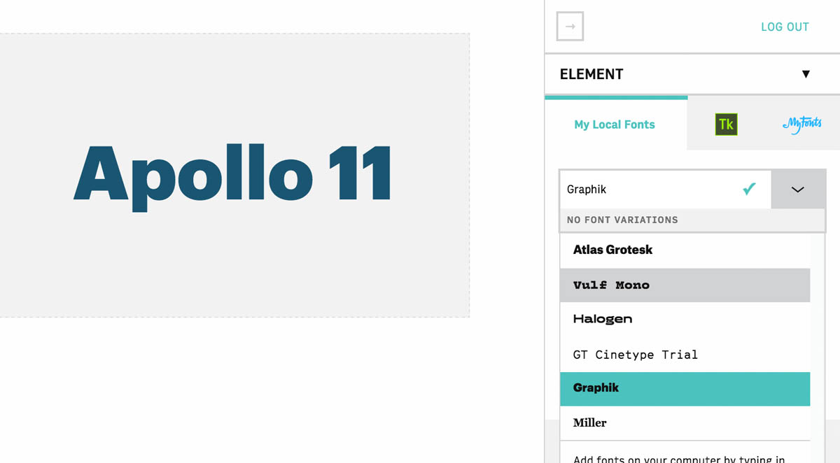 Typeshift lets you design with local fonts on your computer or through Typekit and MyFonts. With font selection our goal is quality over quantity.